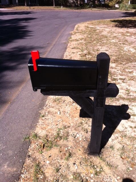 By the way, here's a few pics of the freshly painted mailbox (it matters, people!) and the front of the house featuring the new red door...I've gotten behind on uploading the pics of our progress! :)